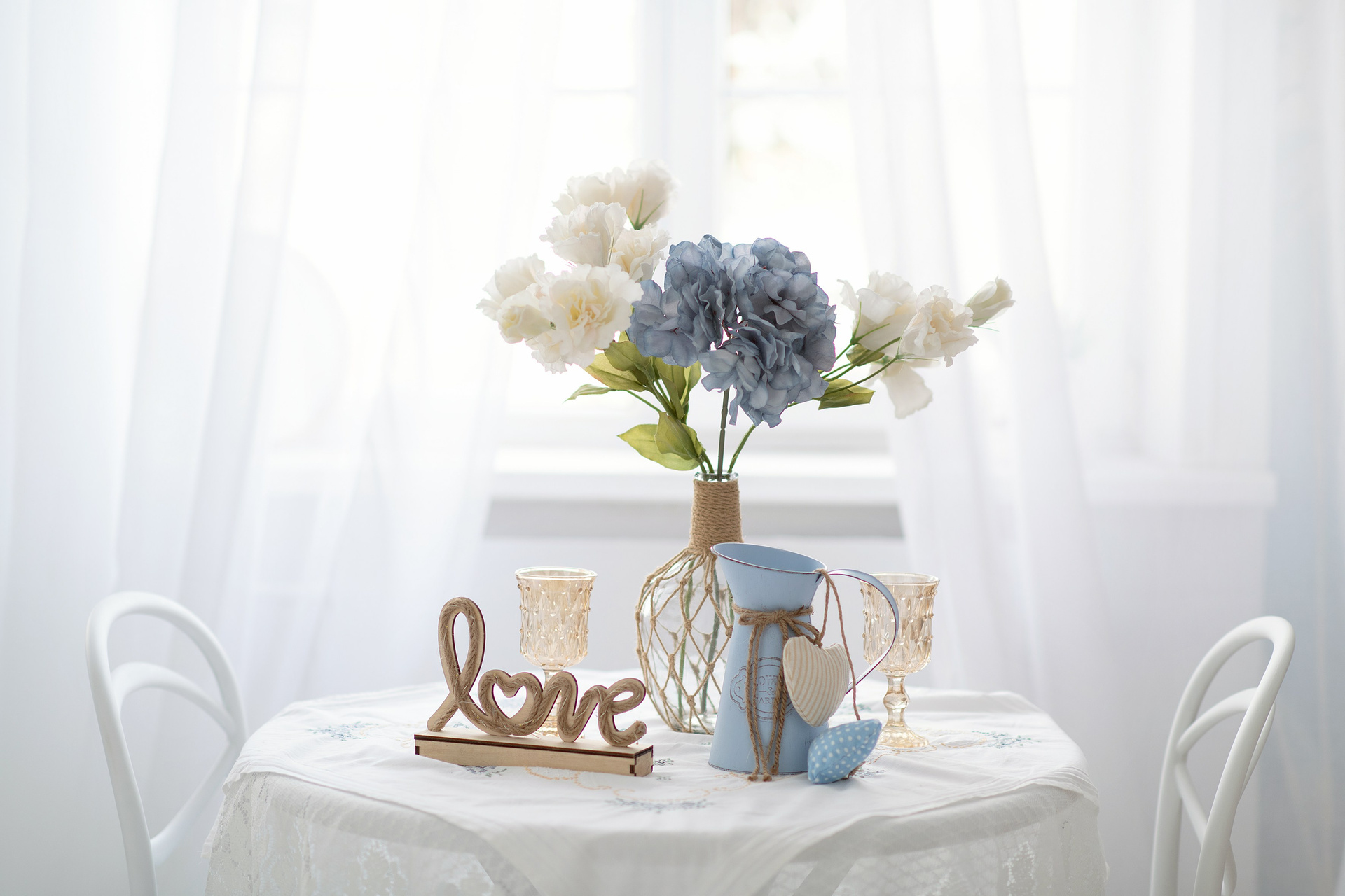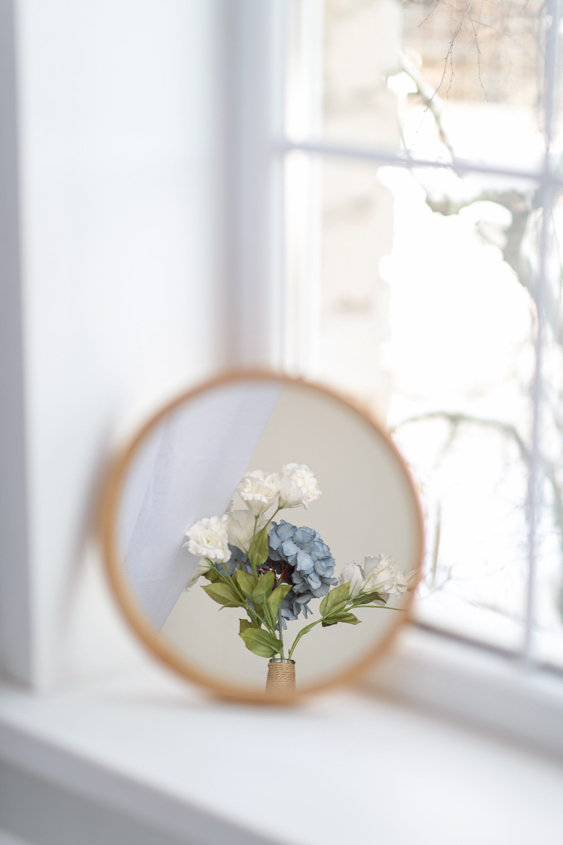 Зона с круглым столом и большим окном. Реквизит можно двигать или заменять.